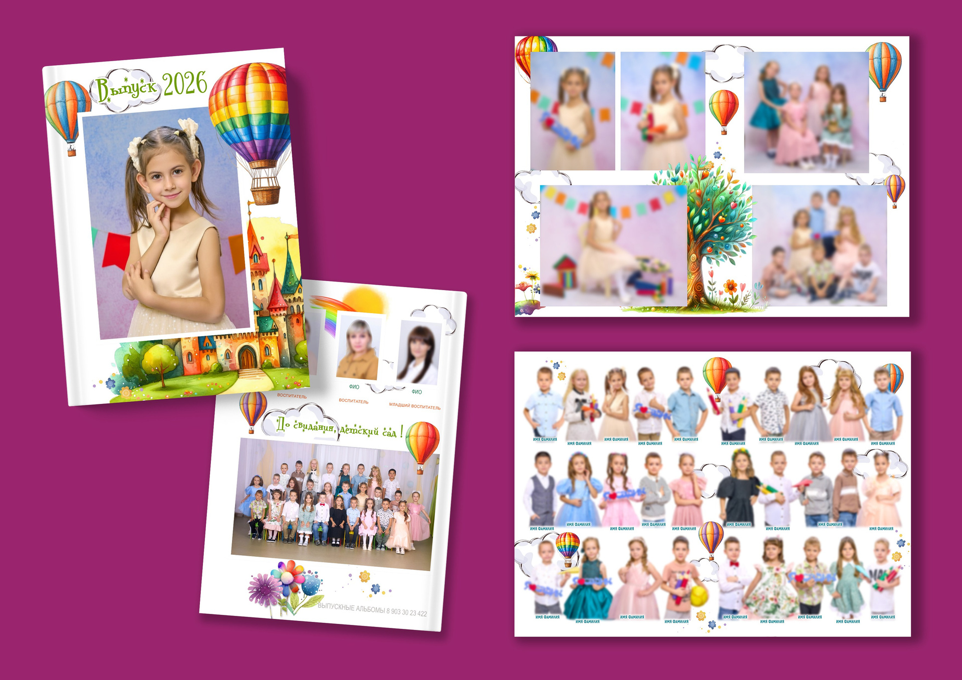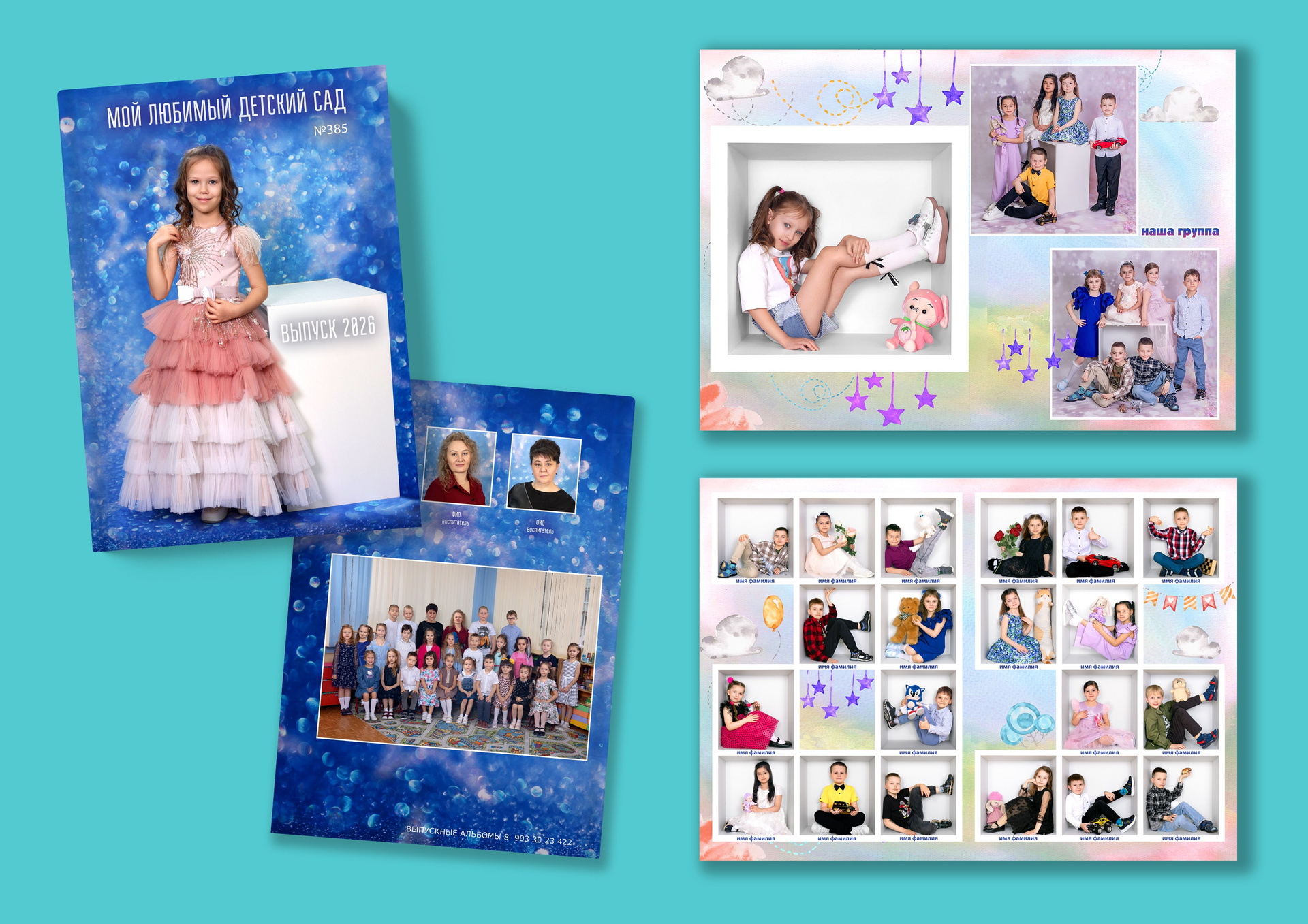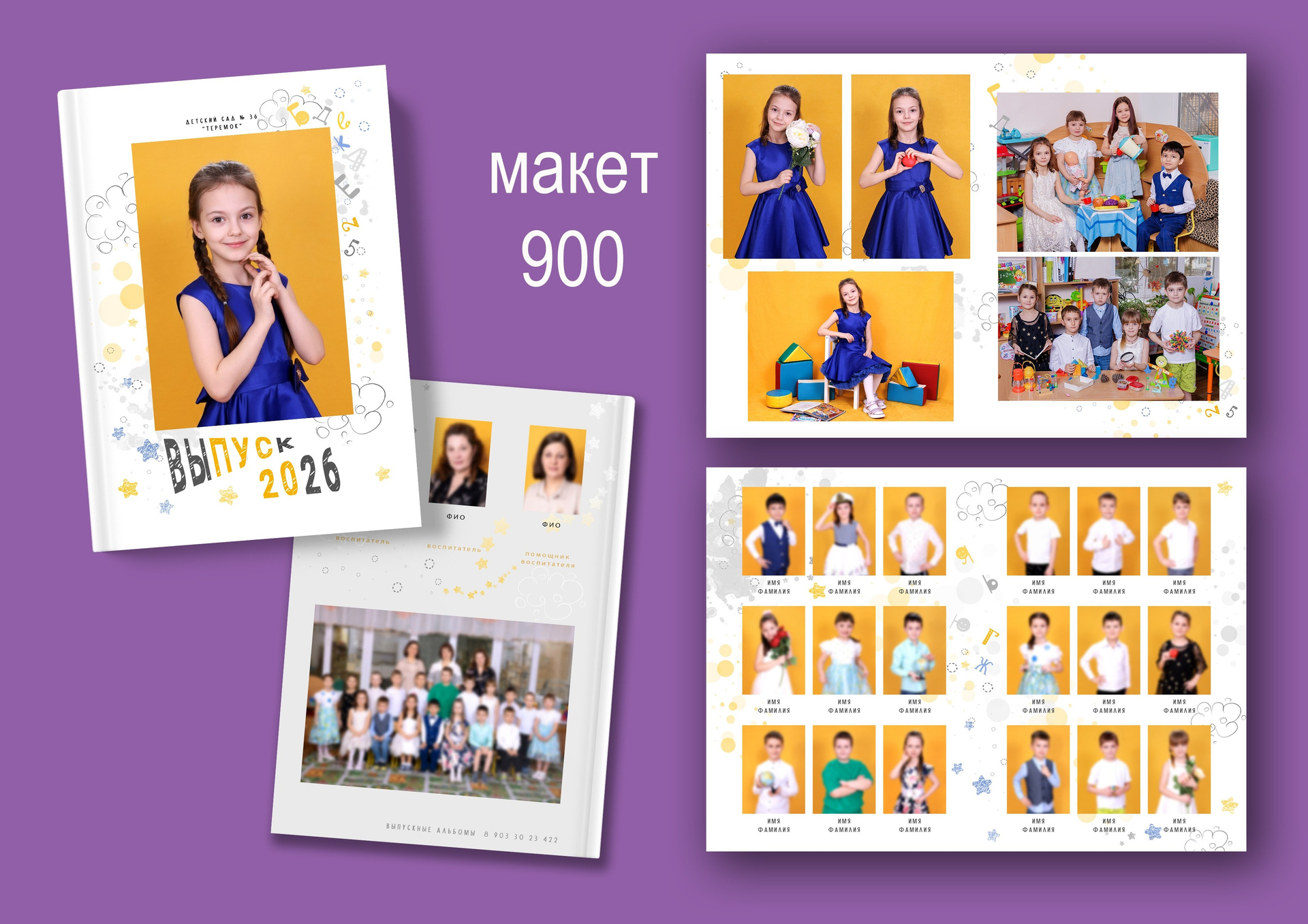 • Наполнение фотографиями в альбоме два разворота, как представлено в образце.